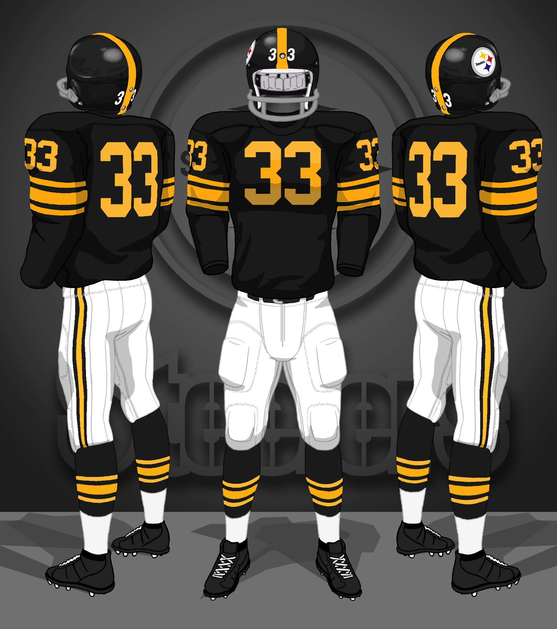 1977-1996 black jerseys, yellow pants